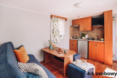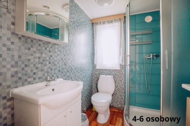 Domki 4-6 osobowe są parterowe. W każdym z nich jest: