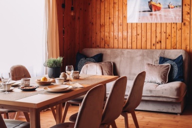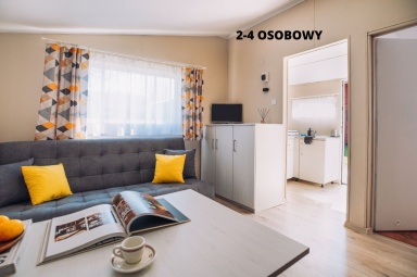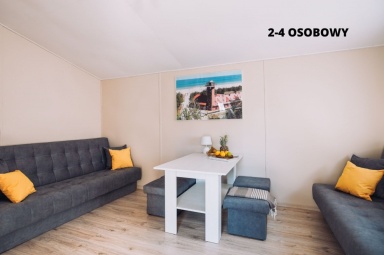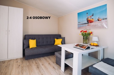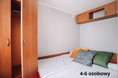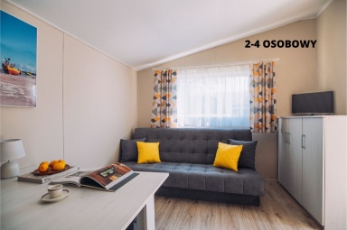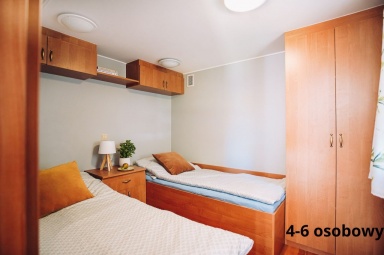 - pokój - dwie rozkładane kanapy z funkcją spania (dla dwóch osób jedna), stolik, krzesła, telewizor, szafa na ubrania, komoda,