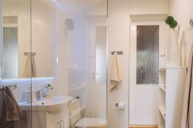 -łazienka - kabina prysznicowa, wc, szafka łazienkowa z umywalką, lustro,